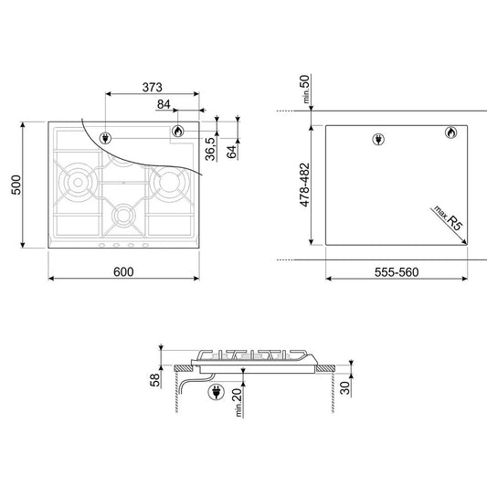 Piano cottura a gas 5 fuochi 70 cm Smeg SRV575GH5