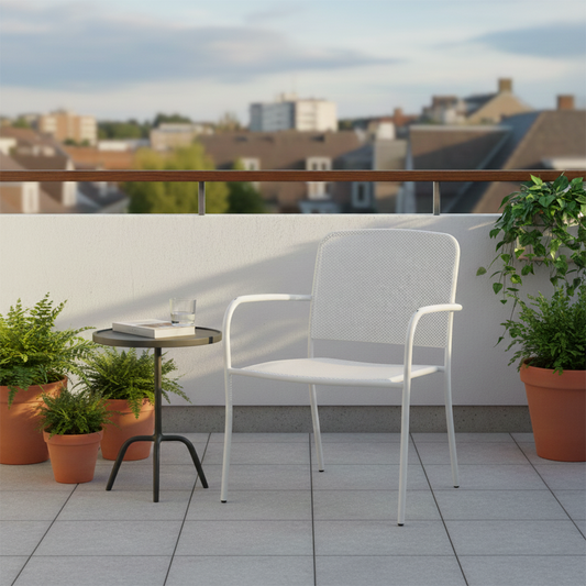 Sedia da esterno in metallo impilabile bianco sporco