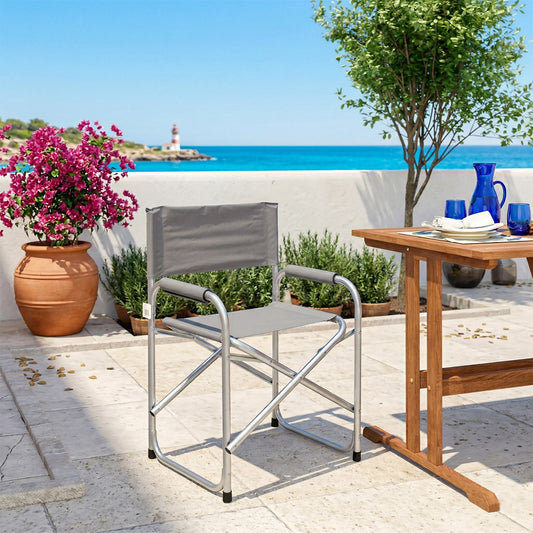 Sedia mare pieghevole regista alluminio grigia leggera con braccioli
