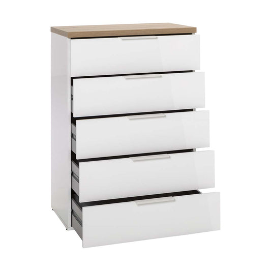 Cassettiera 5 cassetti bianca e rovere 69x101x44cm