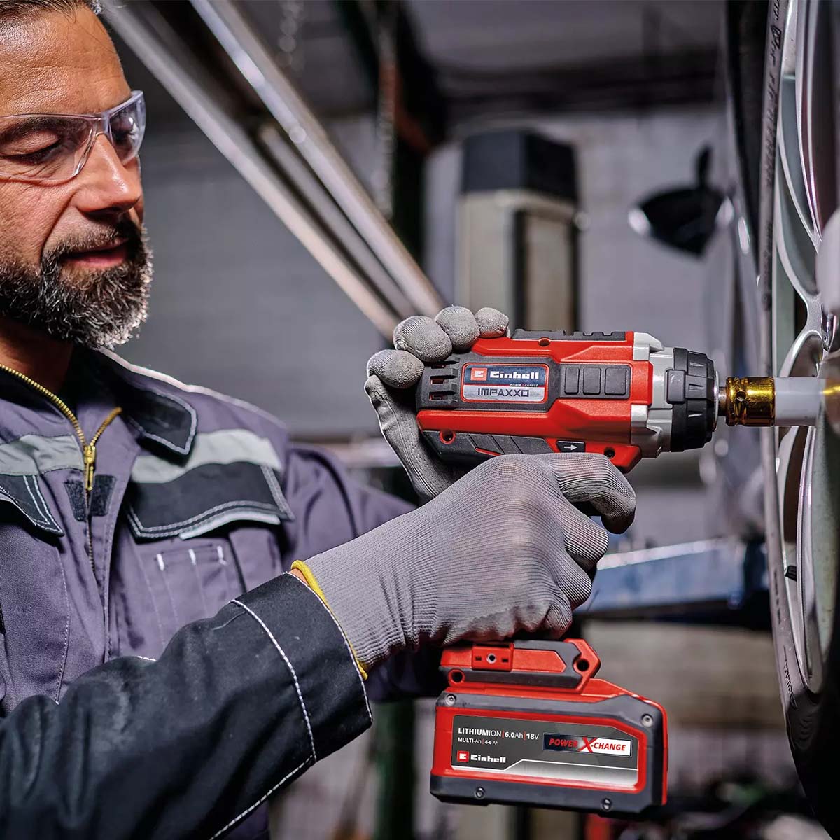 L’avvitatore a percussione IMPAXXO 18/450 offre una coppia massima di 450 Nm e un momento di svitamento fino a 800 Nm, rendendolo perfetto anche per la rimozione dei dadi delle ruote e gli impieghi più impegnativi. I tre livelli di regolazione consentono di adattare coppia e velocità in base al tipo di lavoro, con una gestione ottimale tra controllo e potenza. Parte della famiglia Power X-Change, questo modello è compatibile con tutte le batterie intercambiabili Einhell, offrendo la massima flessibilità d’uso. L’attacco quadro femmina da 1/2" garantisce compatibilità con numerosi accessori, mentre la luce LED integrata assicura una visibilità ottimale anche in ambienti poco illuminati.