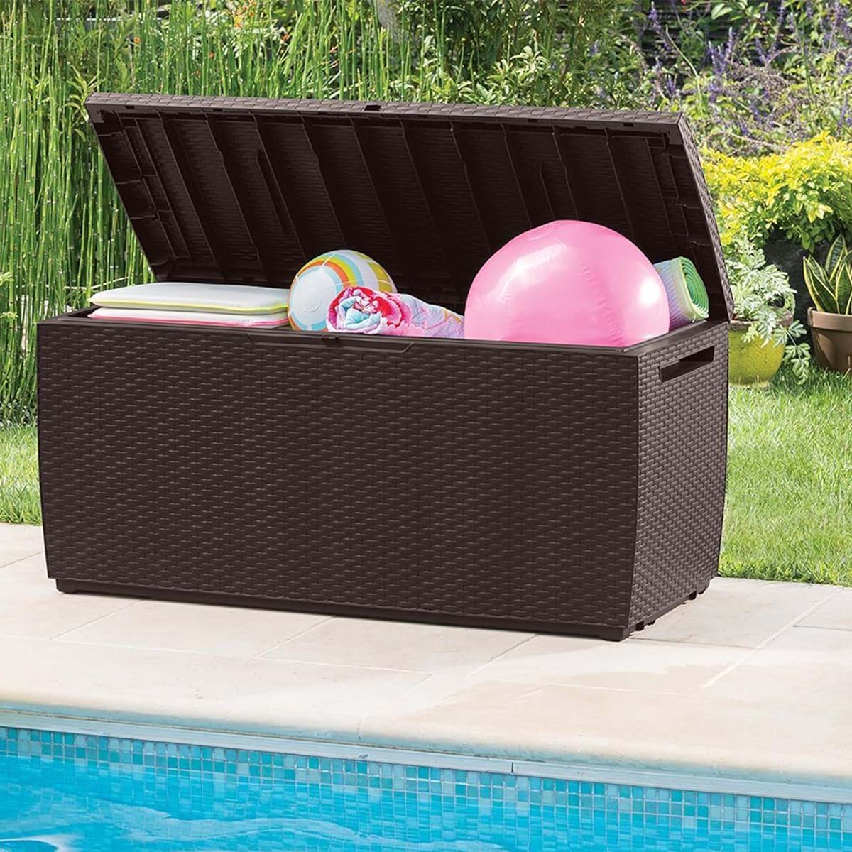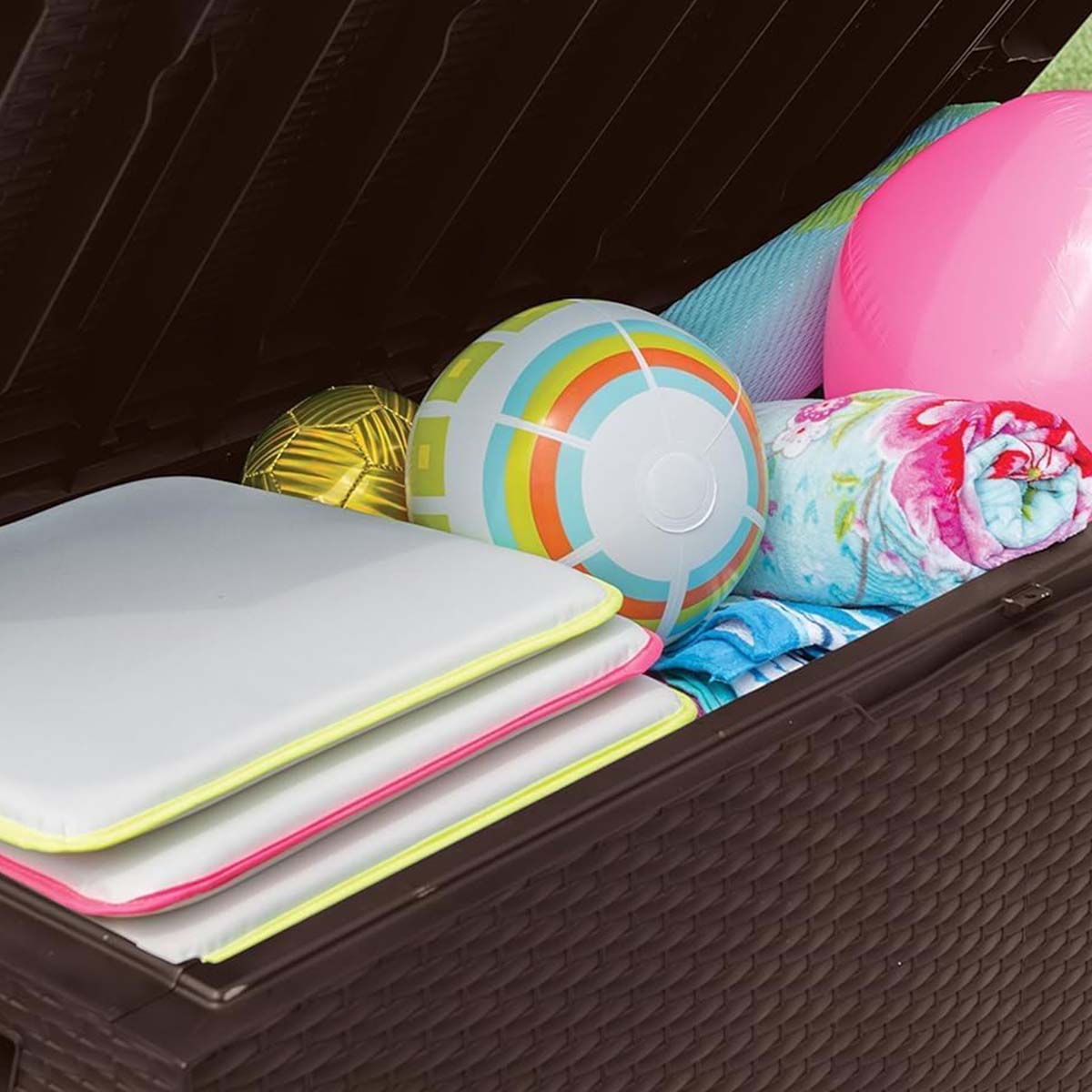 Il baule da esterno Keter Capri è la soluzione perfetta per chi cerca spazio extra, stile e funzionalità nel proprio giardino, balcone o terrazzo. Realizzato in resina resistente con un elegante effetto rattan marrone, è ideale per contenere cuscini, attrezzi, giochi da esterno o prodotti per il giardinaggio.