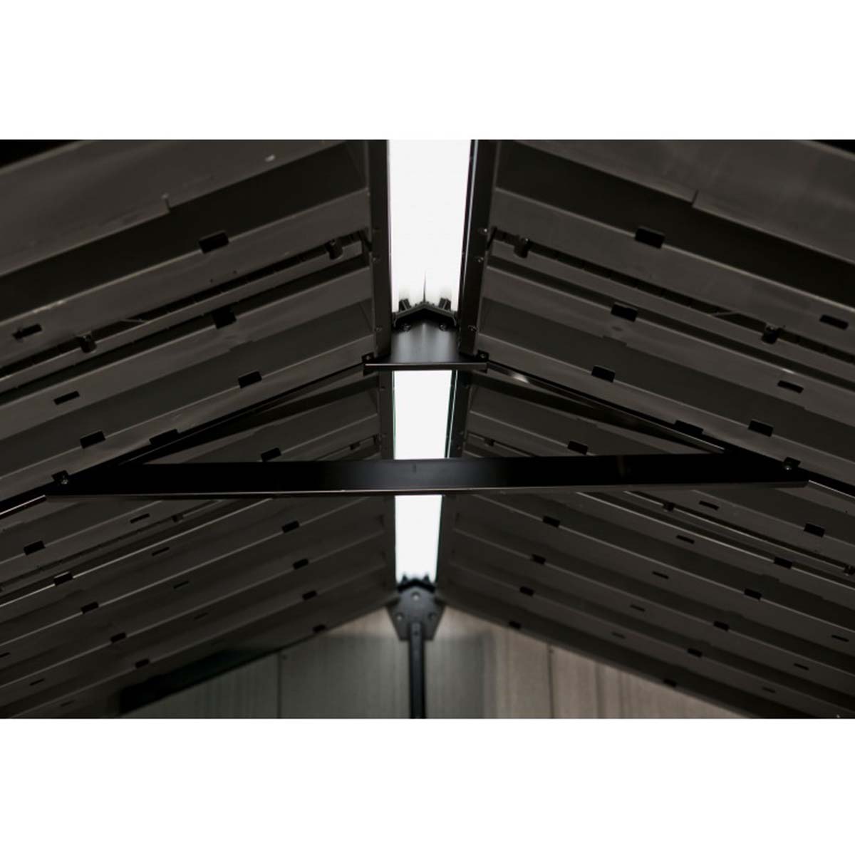 Grazie alla sua struttura a doppia parete con rinforzi interni in metallo, questa casetta è estremamente stabile e resistente, ideale per un utilizzo intensivo in giardino. La doppia porta ad ampia apertura consente di sistemare facilmente anche oggetti ingombranti, mentre il lucernario e le due finestre in policarbonato garantiscono un’ottima illuminazione naturale durante il giorno.