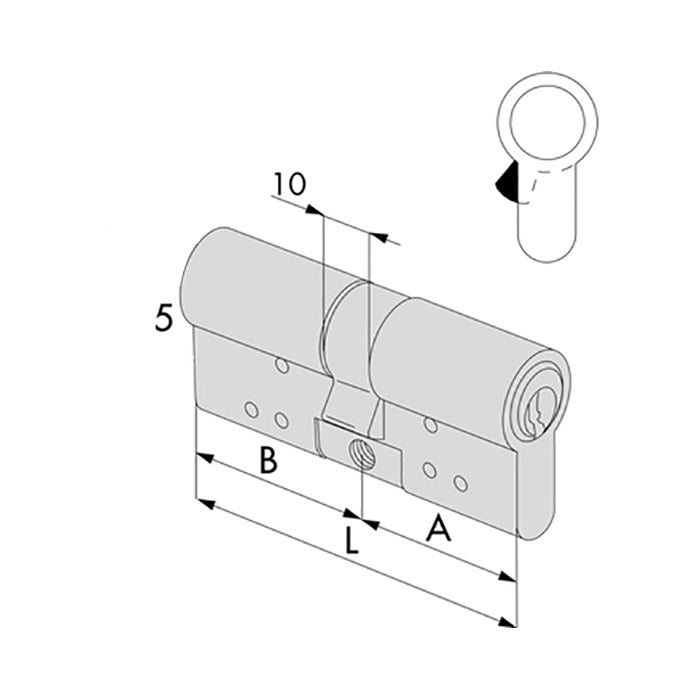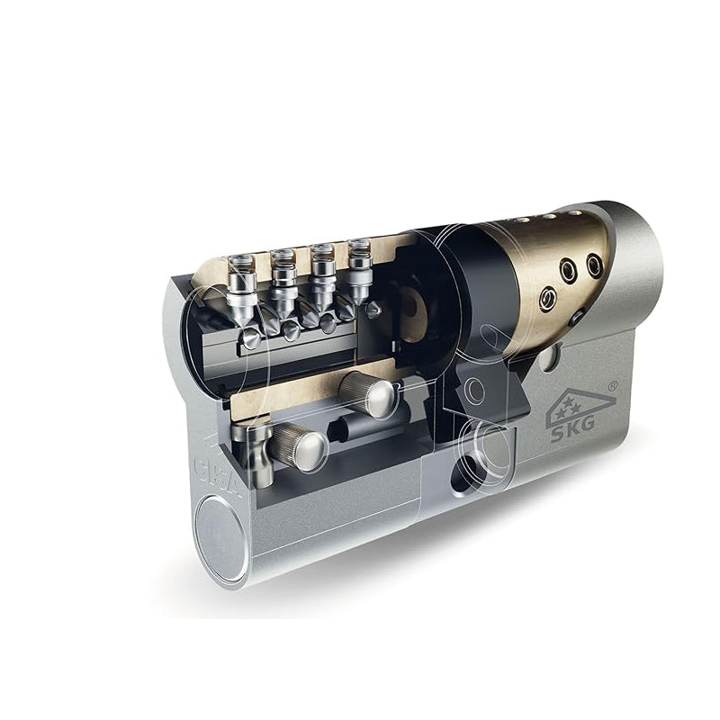- Materiali resistenti: Corpo in ottone e zama, con componenti interni in acciaio carbonitrurato, come perni, controperni e spine di bloccaggio. Questi materiali conferiscono al cilindro un'alta resistenza agli attacchi fisici.