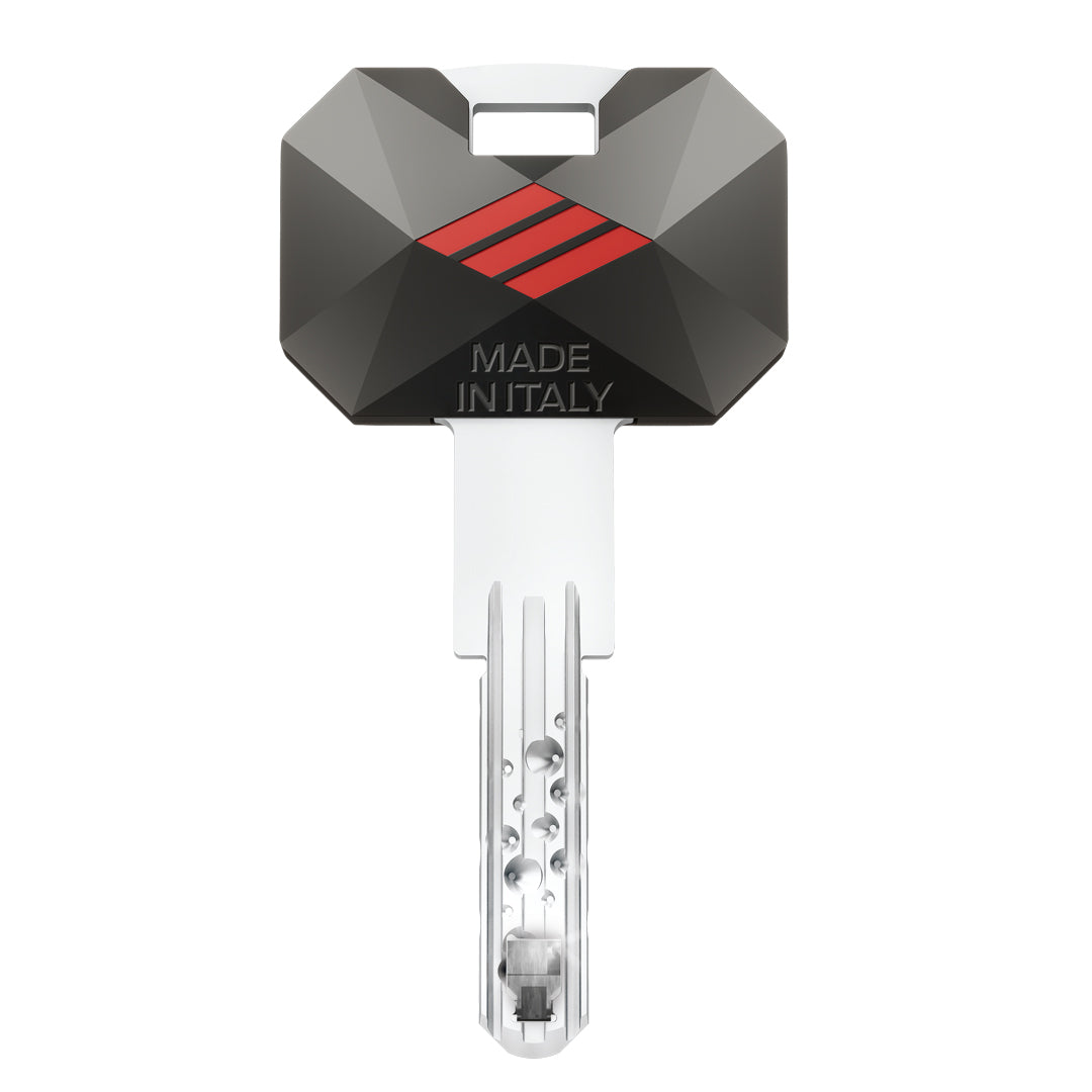 - Chiave reversibile: Realizzata in alpacca con un elemento mobile brevettato e impugnatura ergonomica. Compatibile con borchie di protezione, con un collo da 16 mm.