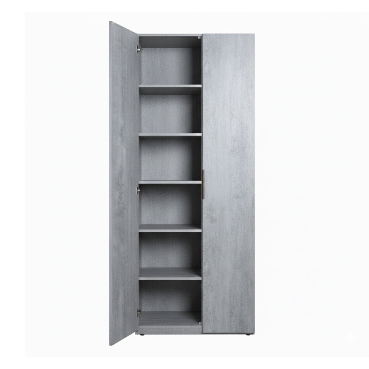 I cinque ripiani interni permettono di organizzare con facilità biancheria, prodotti per la pulizia, documenti o utensili, mantenendo ogni spazio ordinato e funzionale. La struttura solida e la cura dei dettagli rendono questo armadio colonna una soluzione versatile, resistente e di design, perfetta per ogni esigenza di contenimento.