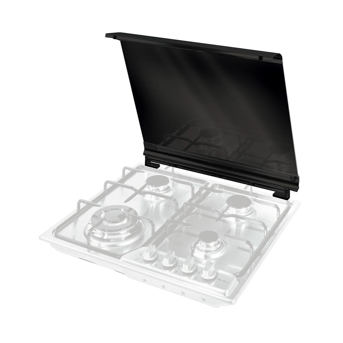 Coperchio in vetro cristallo temperato nero, ideale per piani cottura da incasso standard da 60 cm con comandi frontali. Progettato per offrire protezione, estetica e praticità in cucina. Fissaggio diretto sul piano cottura per una stabilità sicura e duratura.
