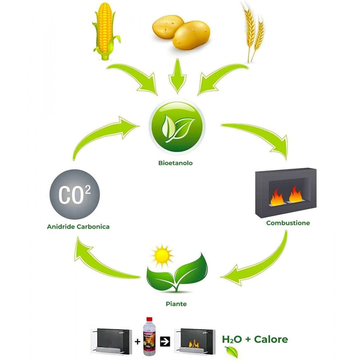 I due fianchi sono costituiti da vetri temperati, che garantiscono maggiore sicurezza anche in caso di rottura. E la speciale forma del bruciatore trattiene il bioetanolo impedendone eventuali fuoriuscite nel caso il caminetto venga capovolto.