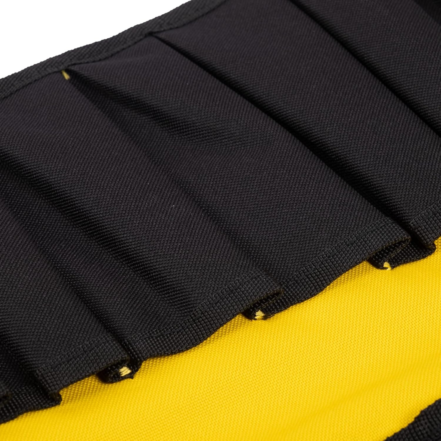 Fodero in robusto nylon 600x600 Den, ideale per riporre utensili di piccole dimensioni. Dispone di 12 tasche e un pratico fodero con copertura superiore. Include una tasca portadocumenti, un porta penne, e lacci di chiusura per mantenere tutto in ordine e protetto.