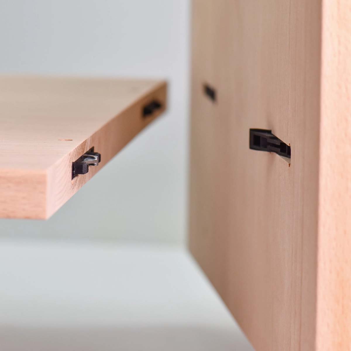 Grazie alla scanalatura P-System e al foro di accesso di soli 6 mm, la giunzione si installa in pochi secondi con fresatrice Zeta P2 Lamello o CNC. L’innesto tramite leva agisce come un sistema a eccentrico, offrendo giunzioni resistenti ma smontabili, ideali per prototipi, arredi complessi o mobili personalizzati.
