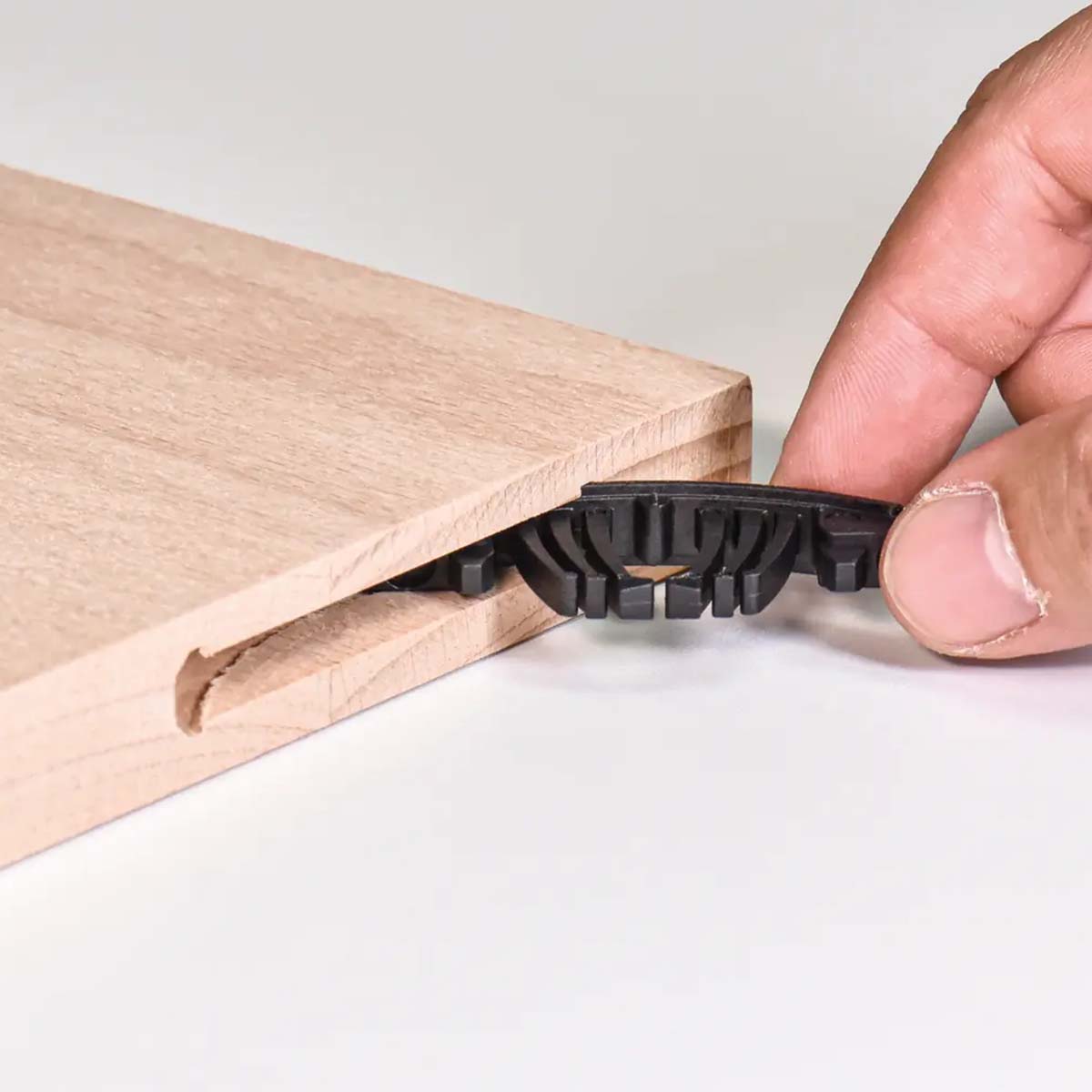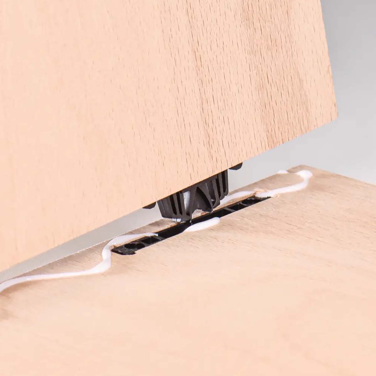 Con una profondità di fresata ridotta di soli 14 mm, la Tenso P-14 con Clip è ideale per unioni estetiche prive di elementi visibili, mantenendo la massima robustezza. La clip integrata assicura un fissaggio ancora più saldo e affidabile, rendendo possibile il trasporto dei pezzi già montati in modo sicuro e ordinato.