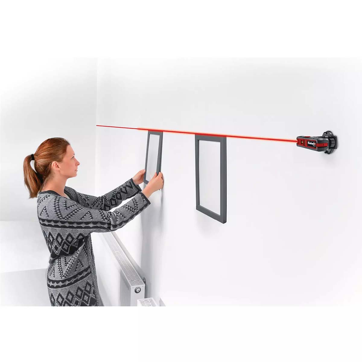 Il dispositivo permette di tracciare linee orizzontali, verticali e diagonali grazie al pratico supporto a parete flessibile incluso, garantendo massima versatilità. Il puntatore laser integrato consente inoltre di trasferire con precisione l’altezza nello spazio.