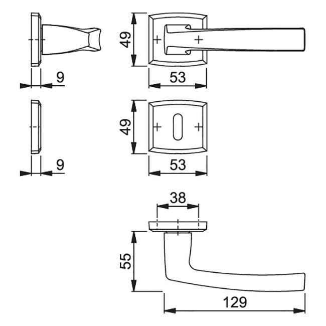 Dimensioni rosetta e bocchetta: 53x49 mm