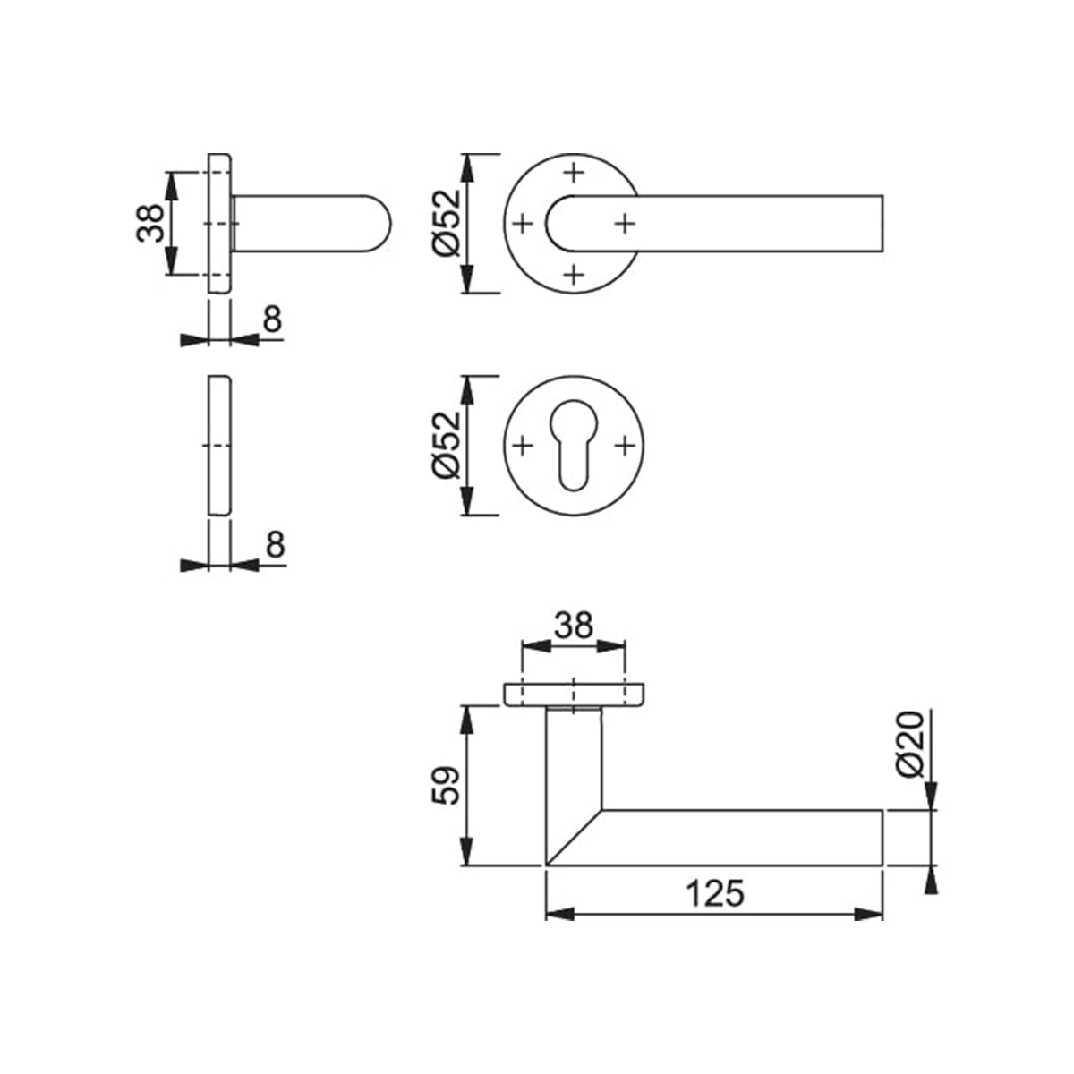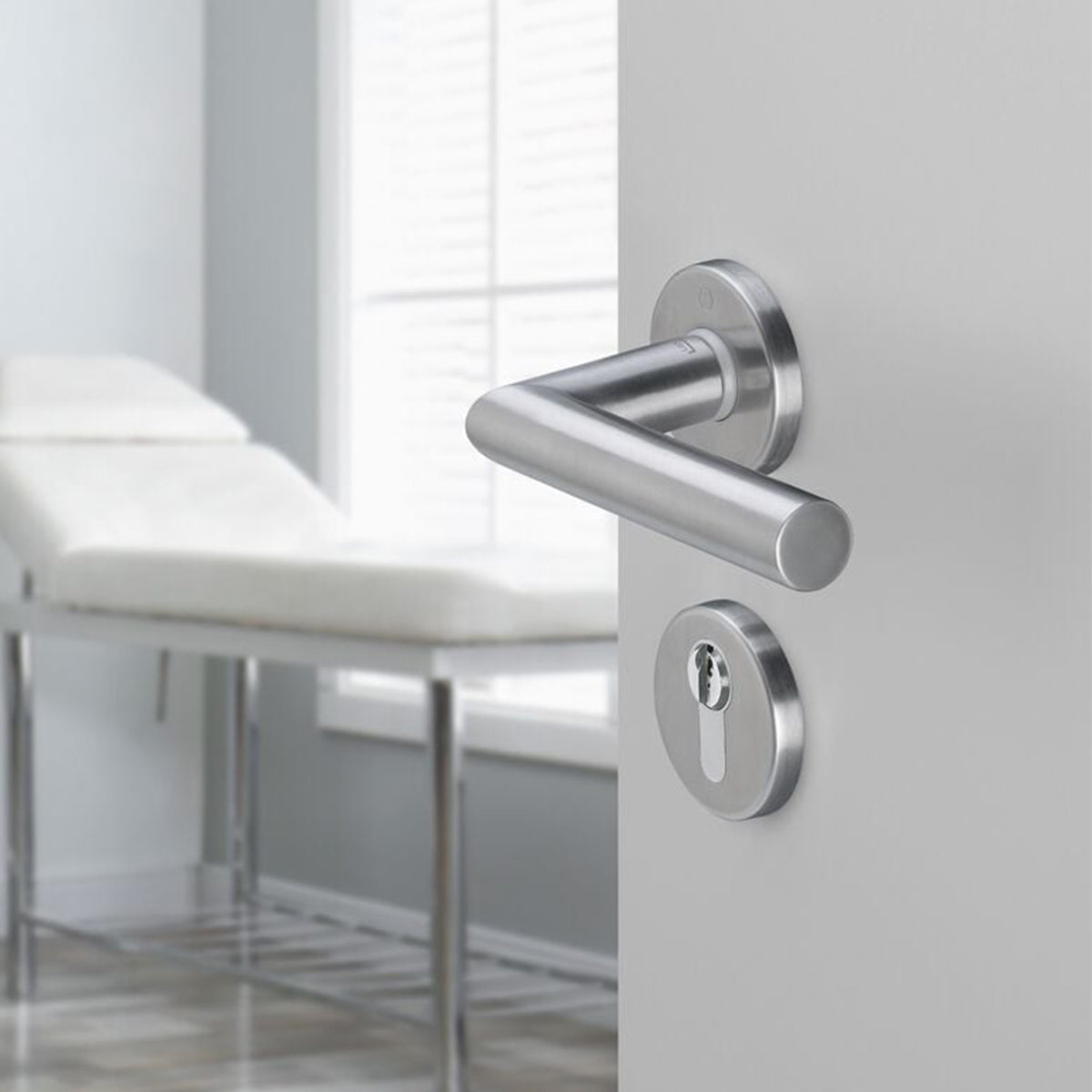 Maniglia Hoppe Amsterdam rosetta e bocchetta tonde d. 52 mm foro cilindro Secusan