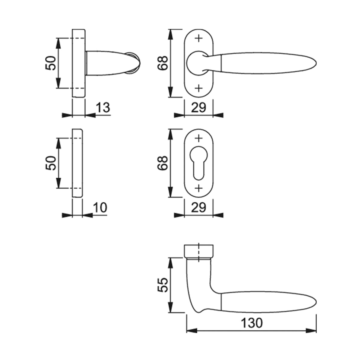 Maniglia Hoppe Athinai rosetta e bocchetta ovali 29x68mm foro cilindro