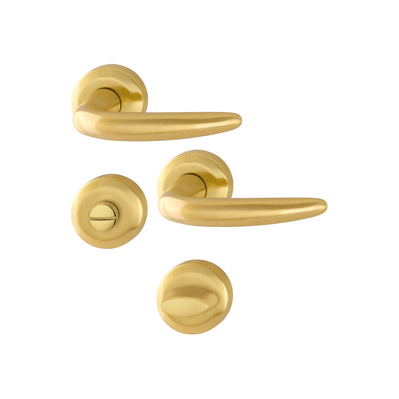 Maniglia Hoppe Atlanta con rosetta e bocchetta tonda d. 52 mm ottone satinato con nottolino