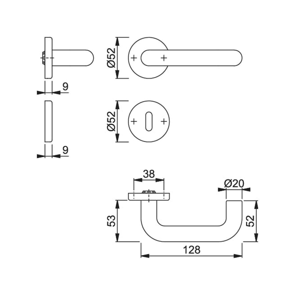 Maniglia Hoppe Baden rosetta e bocchetta tonde d. 52 mm