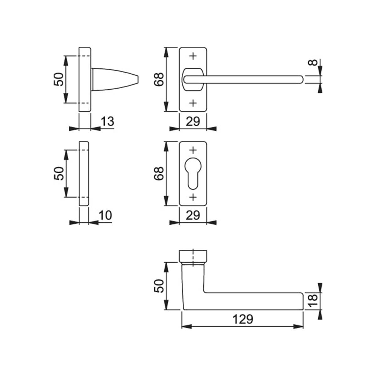 Maniglia Hoppe Bergamo rosetta e bocchetta rettangolari 29x68 mm foro cilindro