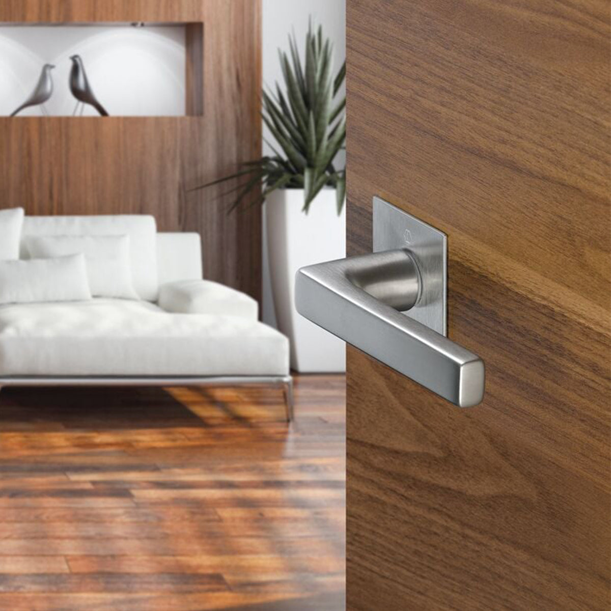Maniglia Hoppe Dallas rosetta e bocchetta quadre 53x53 mm nichel satinato/acciaio satinato