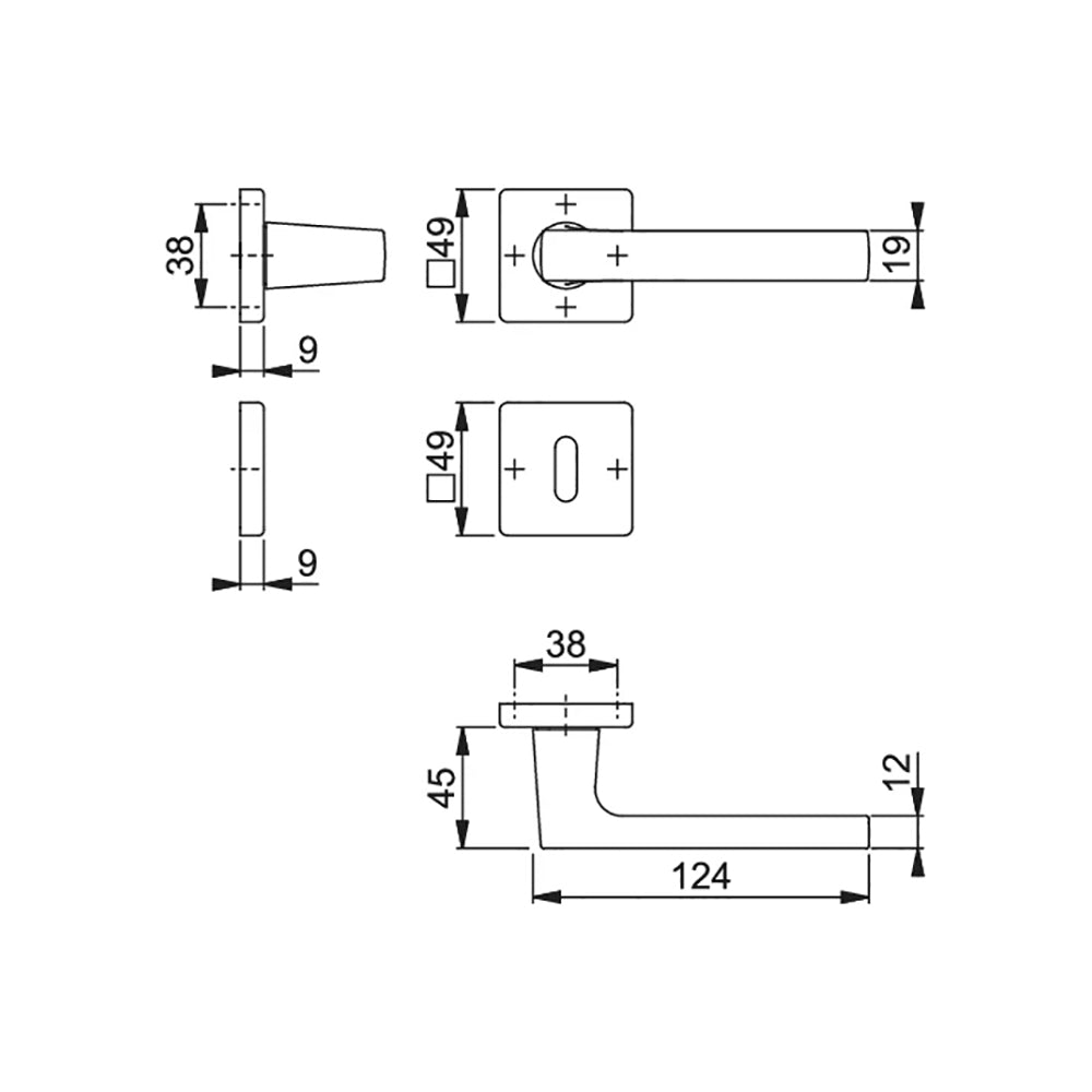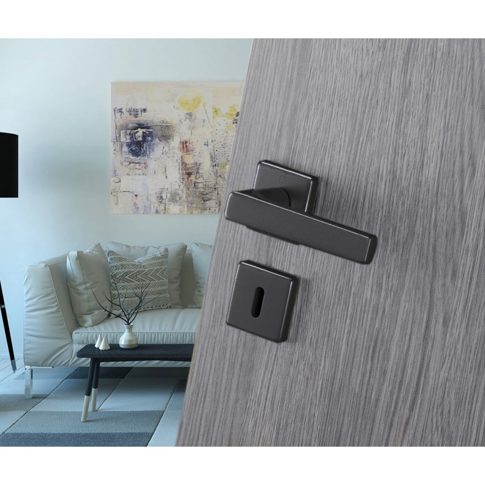 Maniglia Hoppe Dallas con rosetta e bocchetta quadra 49 mm