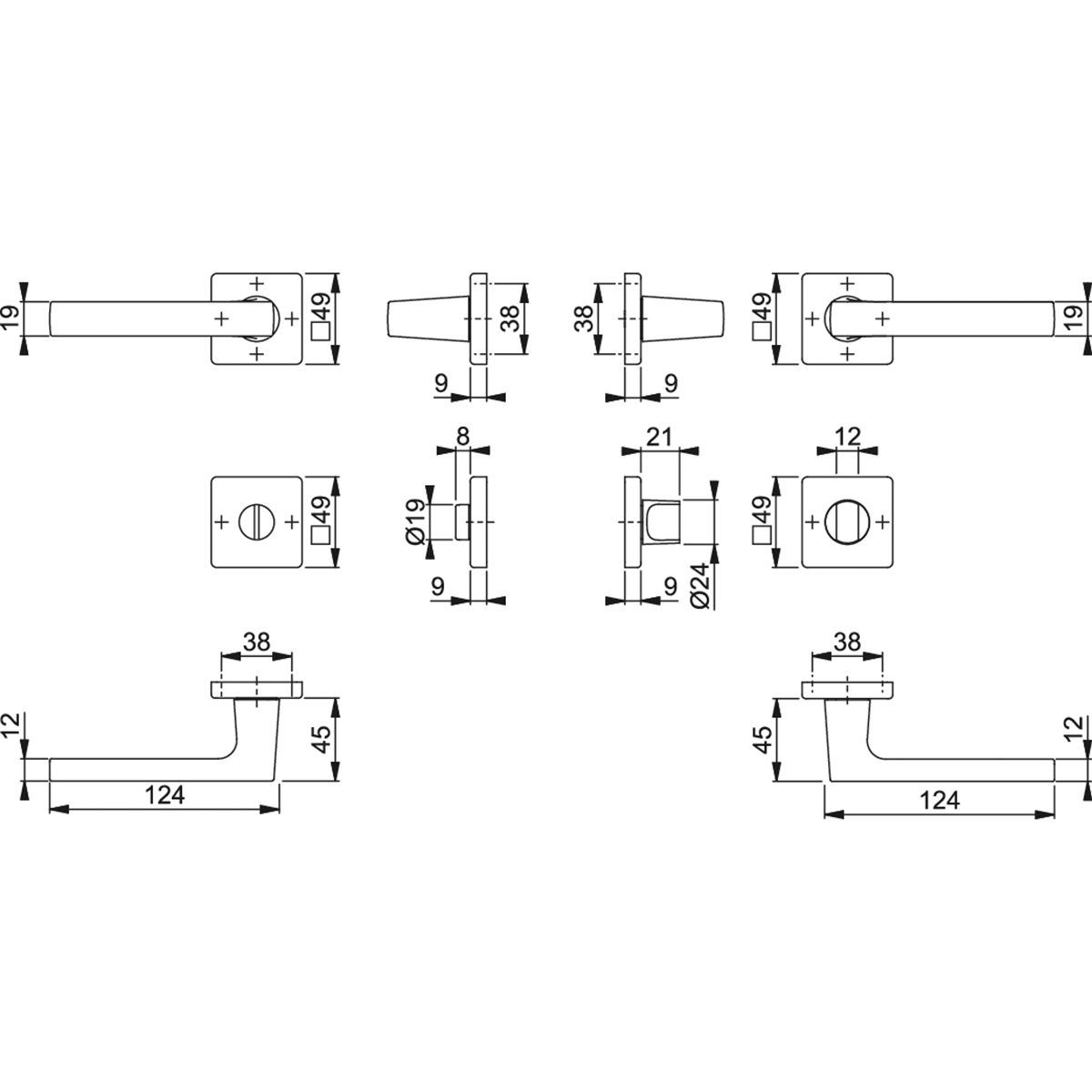 Maniglia Hoppe Dallas rosetta e bocchetta quadre 49x49 mm cromo satinato con nottolino