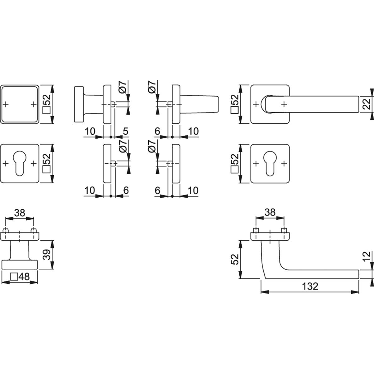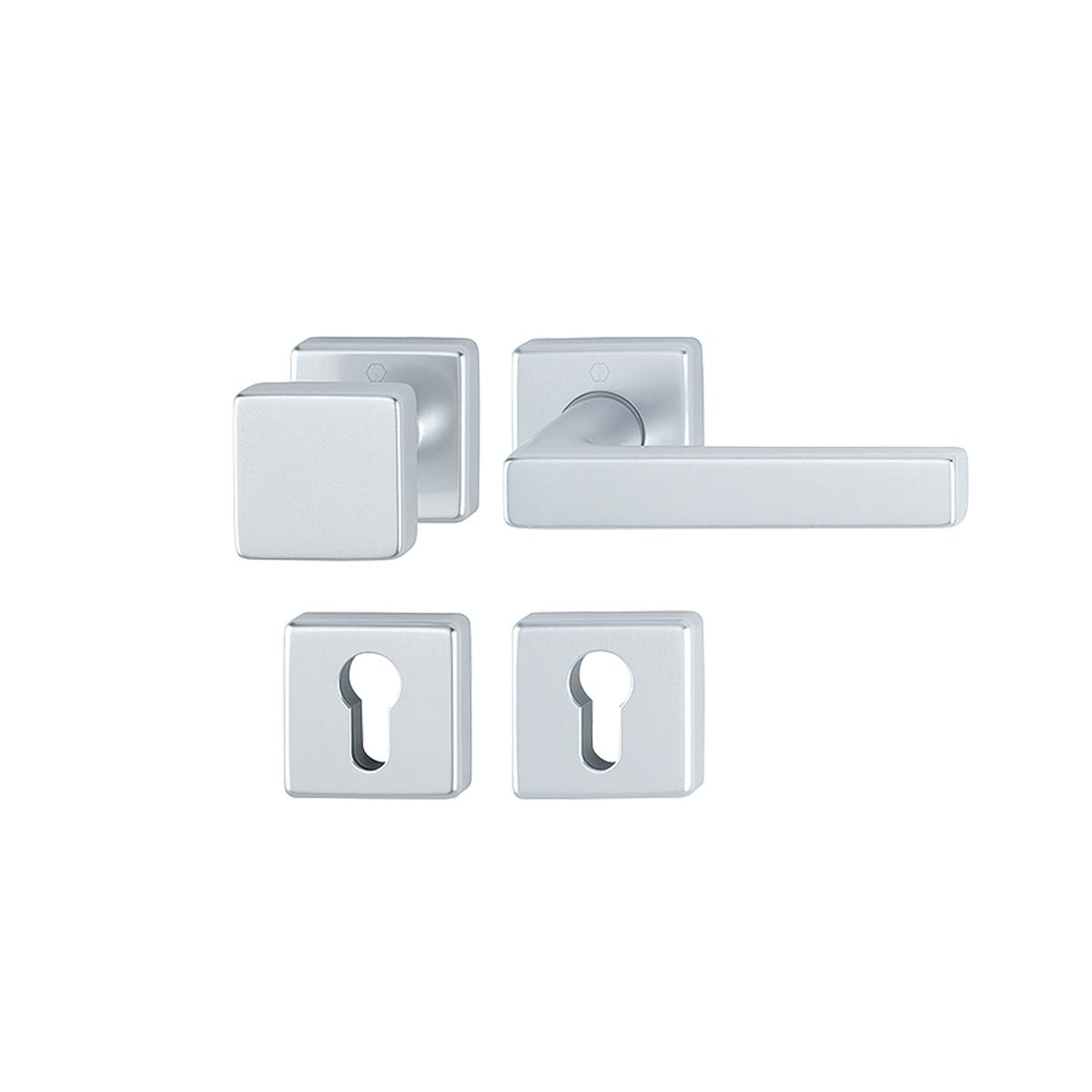 Maniglia Hoppe Dallas rosetta e bocchetta quadra 52 mm argento con pomello