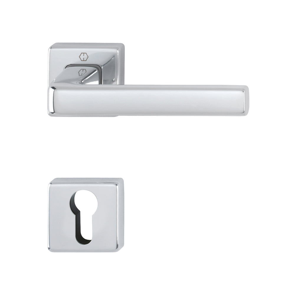 Maniglia Hoppe Dublin con rosetta e bocchetta quadre foro cilindro 44 mm