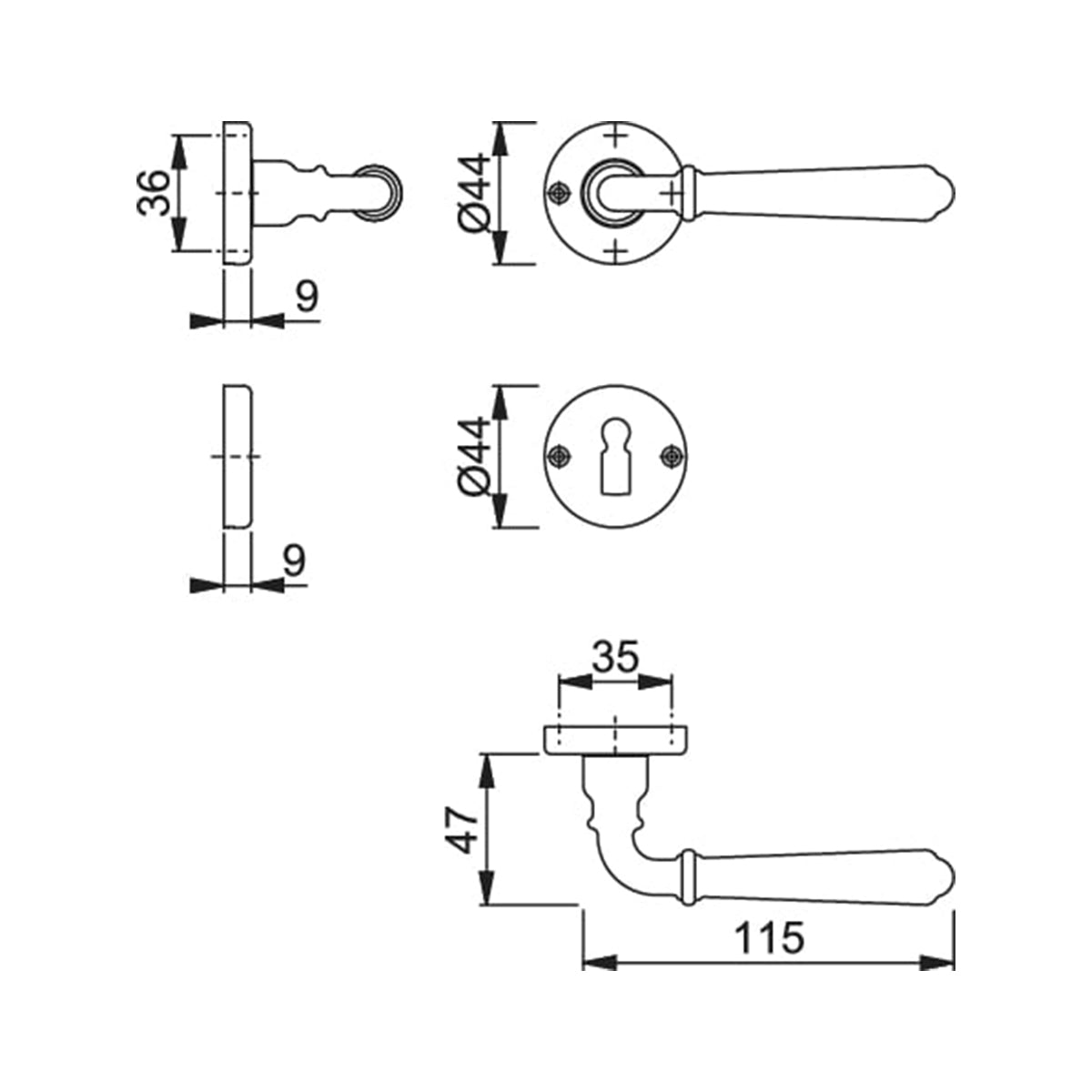 Maniglia Hoppe Elba rosetta e bocchetta tonde d. 44 mm