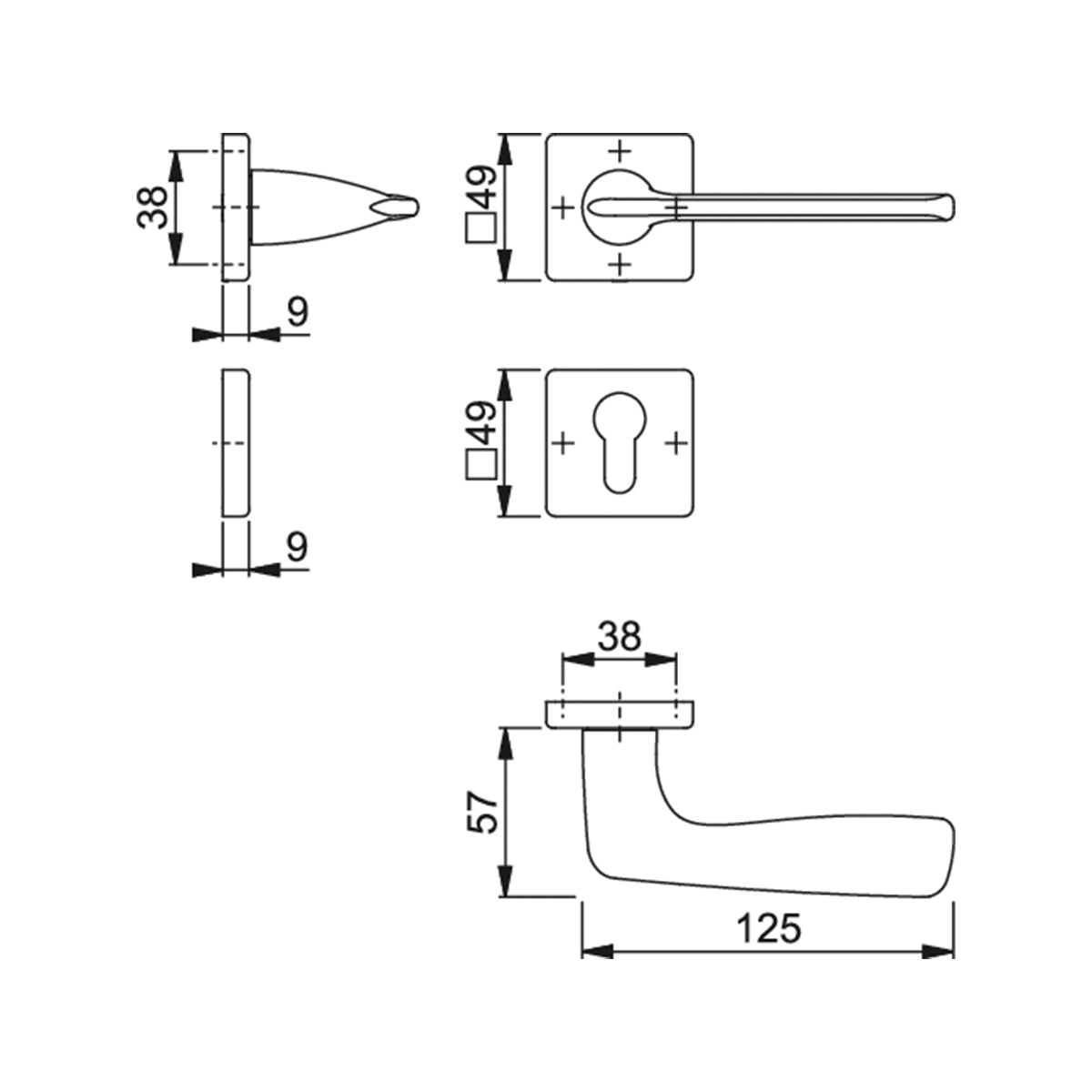 Maniglia Hoppe Houston rosetta e bocchetta quadre 49x49 mm foro cilindro