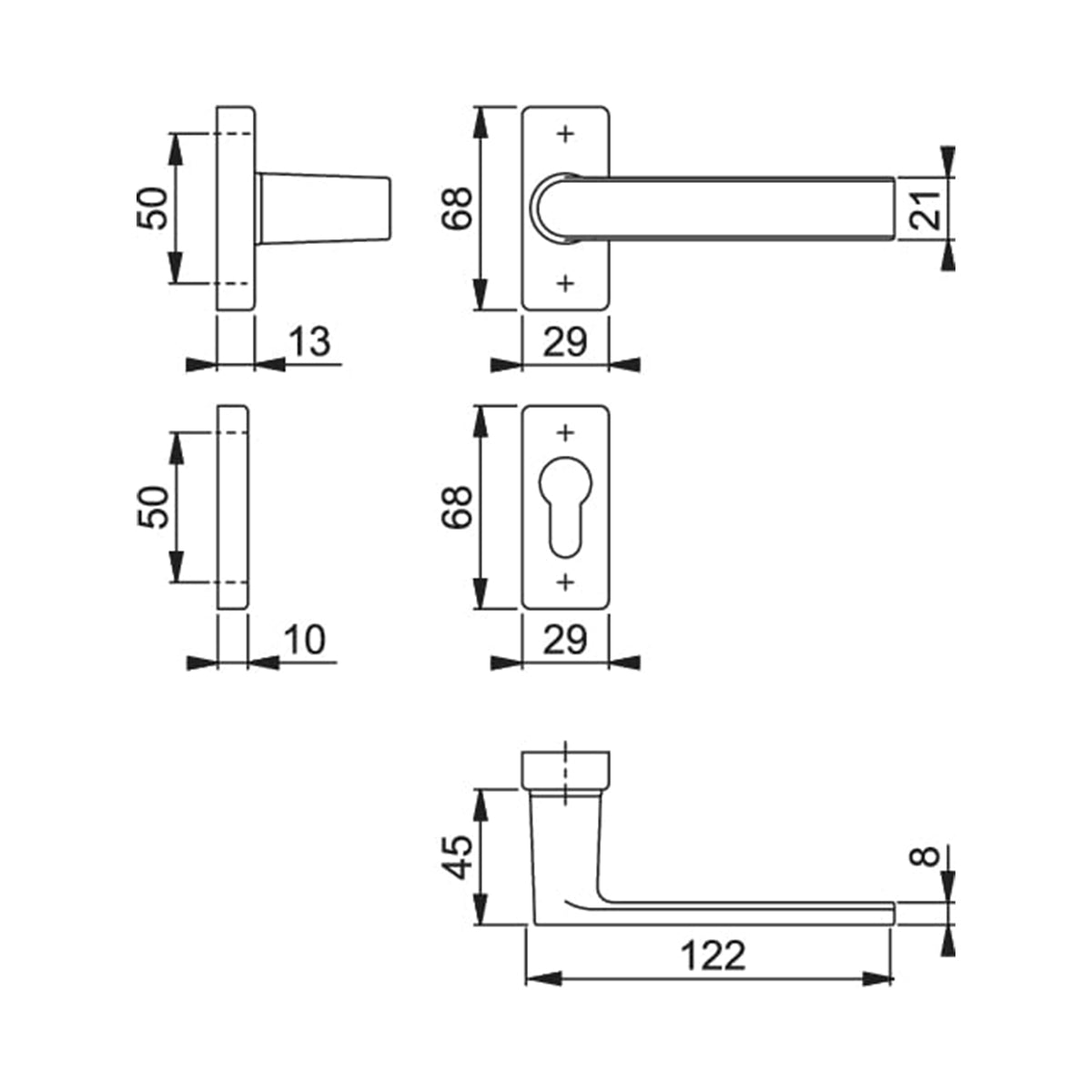 Maniglia Hoppe Los Angeles rosetta e bocchetta rettangolari 29x68 mm foro cilindro