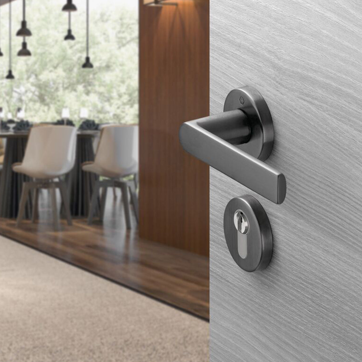 Maniglia Hoppe Los Angeles rosetta e bocchetta tonde d. 52 mm foro cilindro antracite satinato