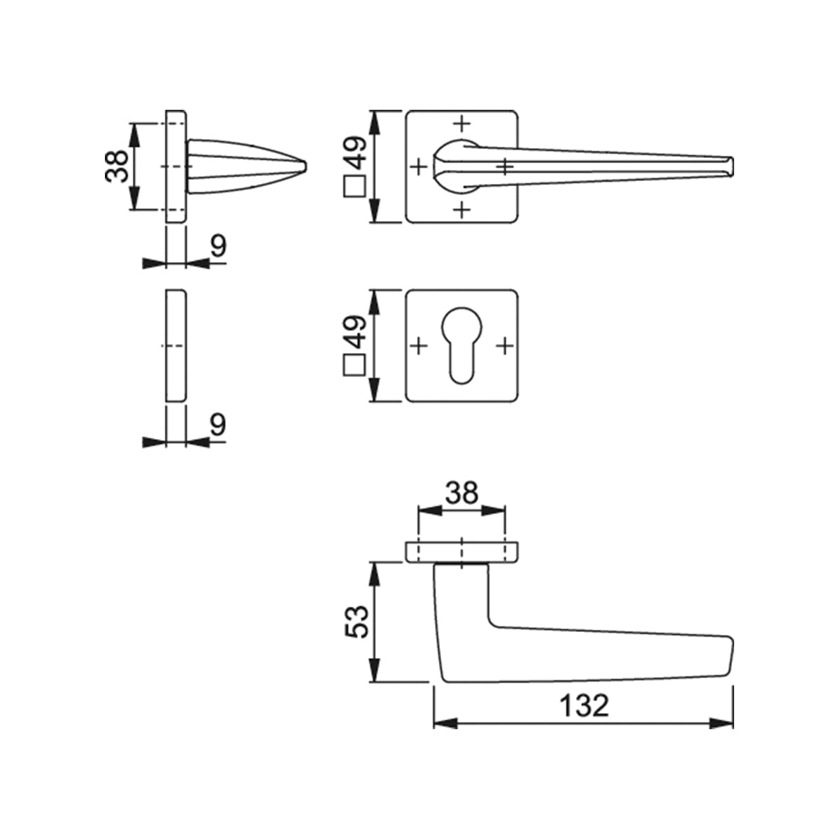 Maniglia Hoppe Macau rosetta e bocchetta quadre 49x49 mm foro cilindro