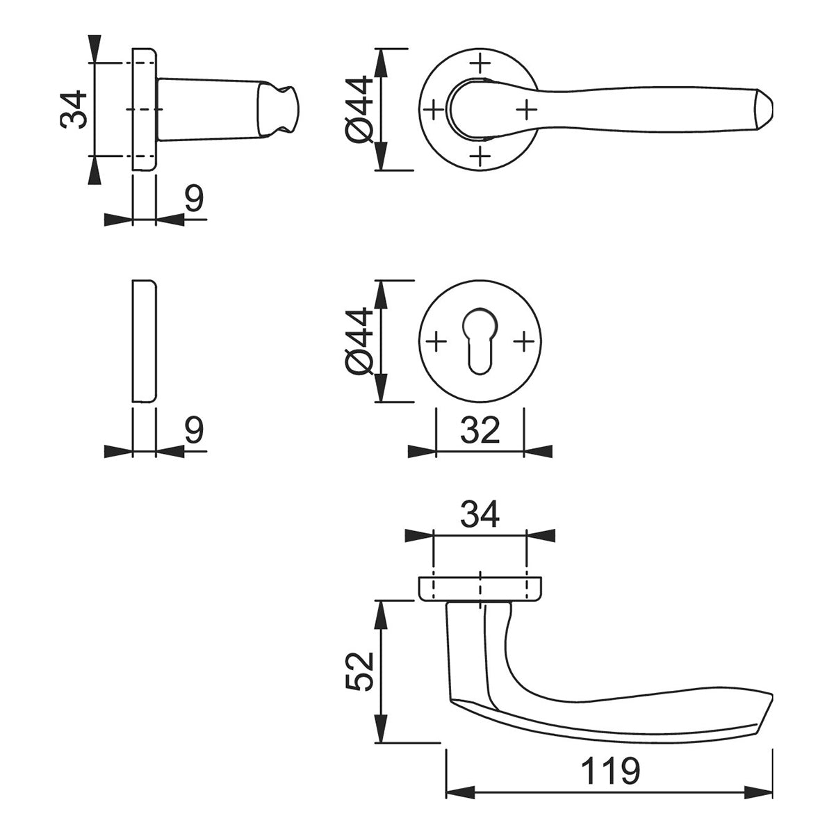 Maniglia Hoppe Milano con rosetta e bocchetta tonda foro cilindro d. 44 mm