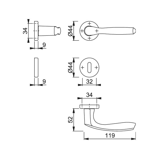 Maniglia Hoppe Milano con rosetta e bocchetta tonda diametro 44 mm