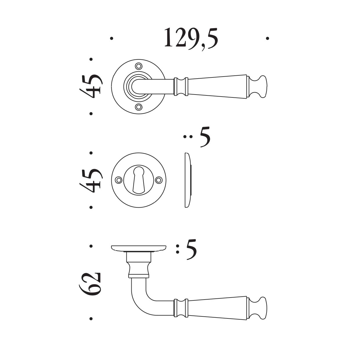 - Altezza complessiva (con rosetta): 45 mm