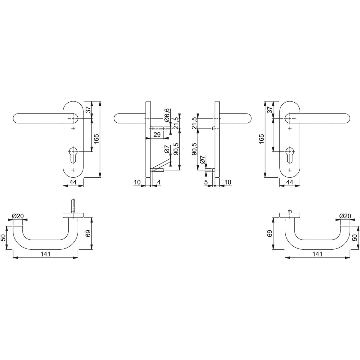 Maniglia Hoppe Paris con placca int. 72 mm foro cilindro acciaio satinato