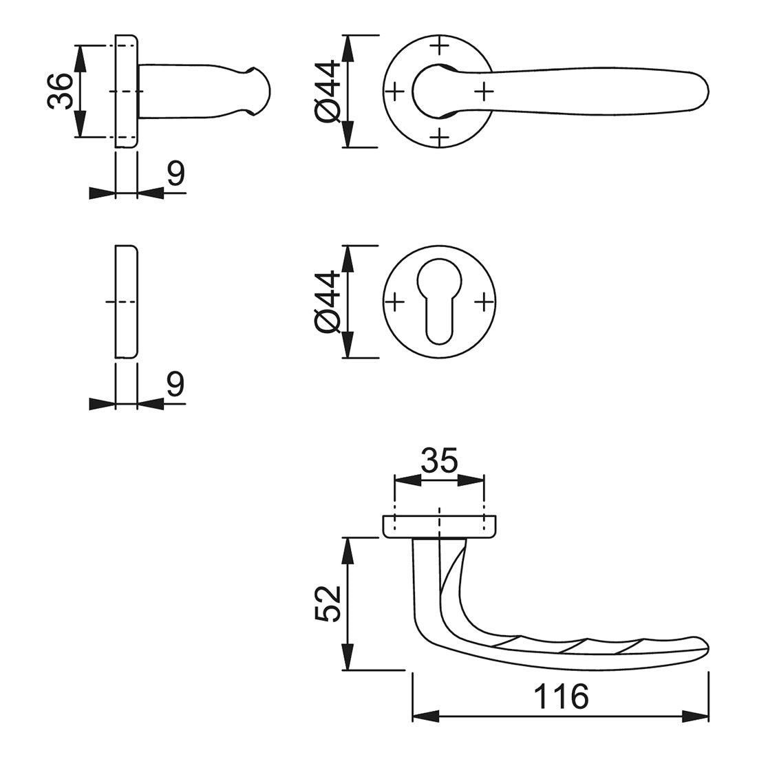 Maniglia Hoppe Roissy con rosetta e bocchetta tonda foro cilindro d. 44 mm