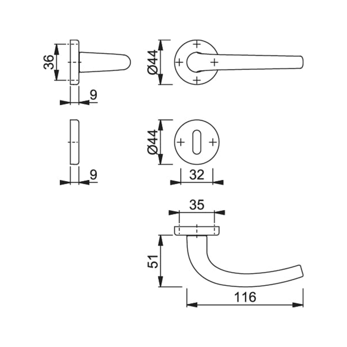 Maniglia Hoppe Seattle rosetta e bocchetta tonde d. 44 mm cromo satinato