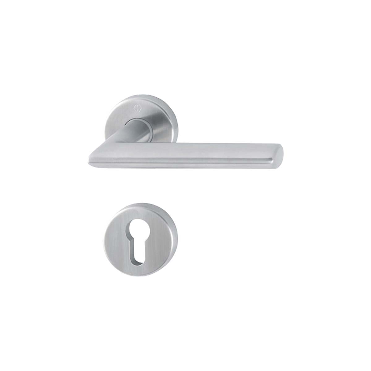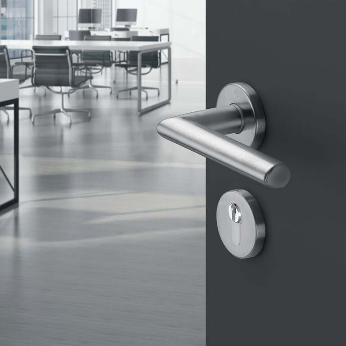 Maniglia Hoppe Stockholm rosetta e bocchetta tonde d. 52 mm foro cilindro acciaio satinato