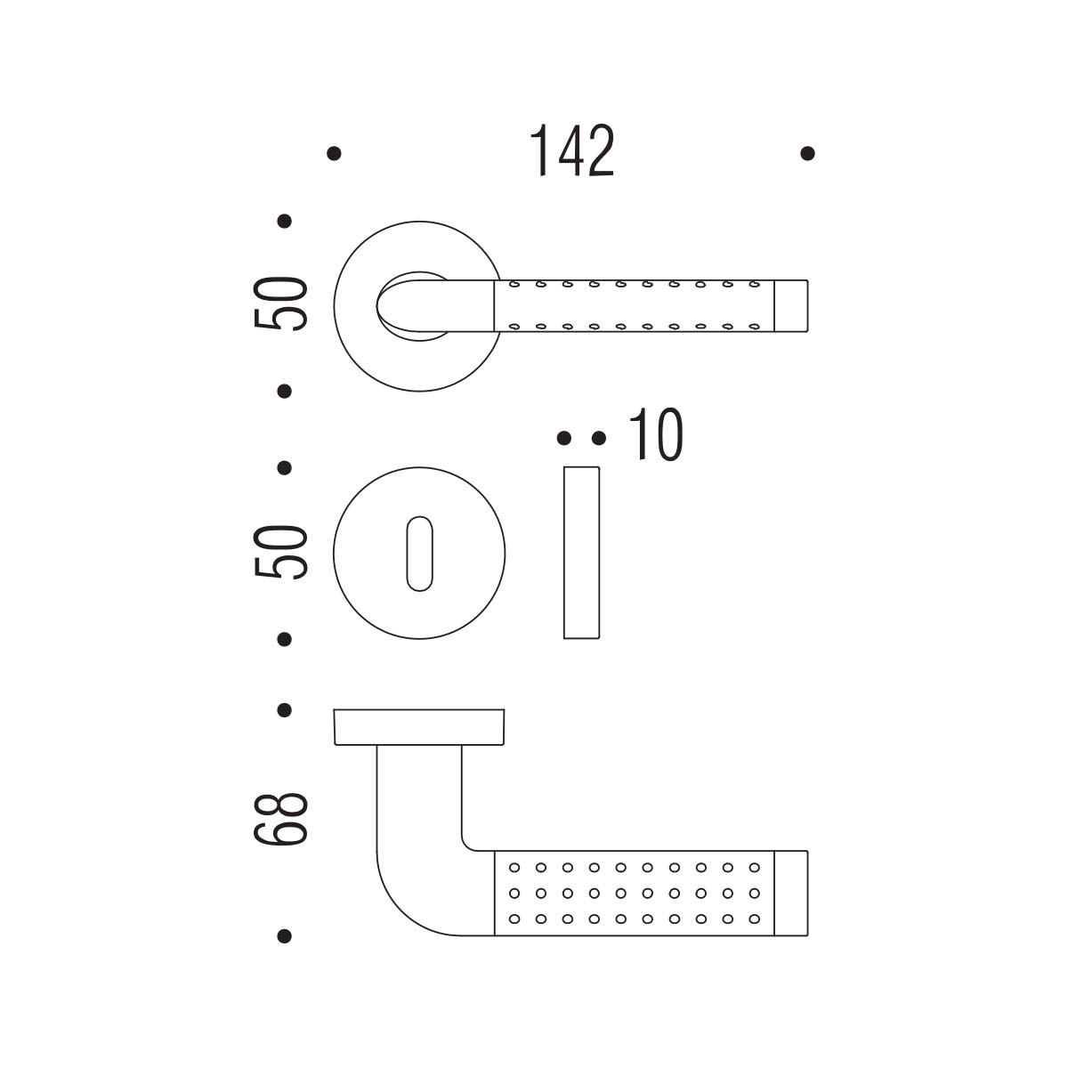 - Altezza complessiva (con rosetta): 50 mm