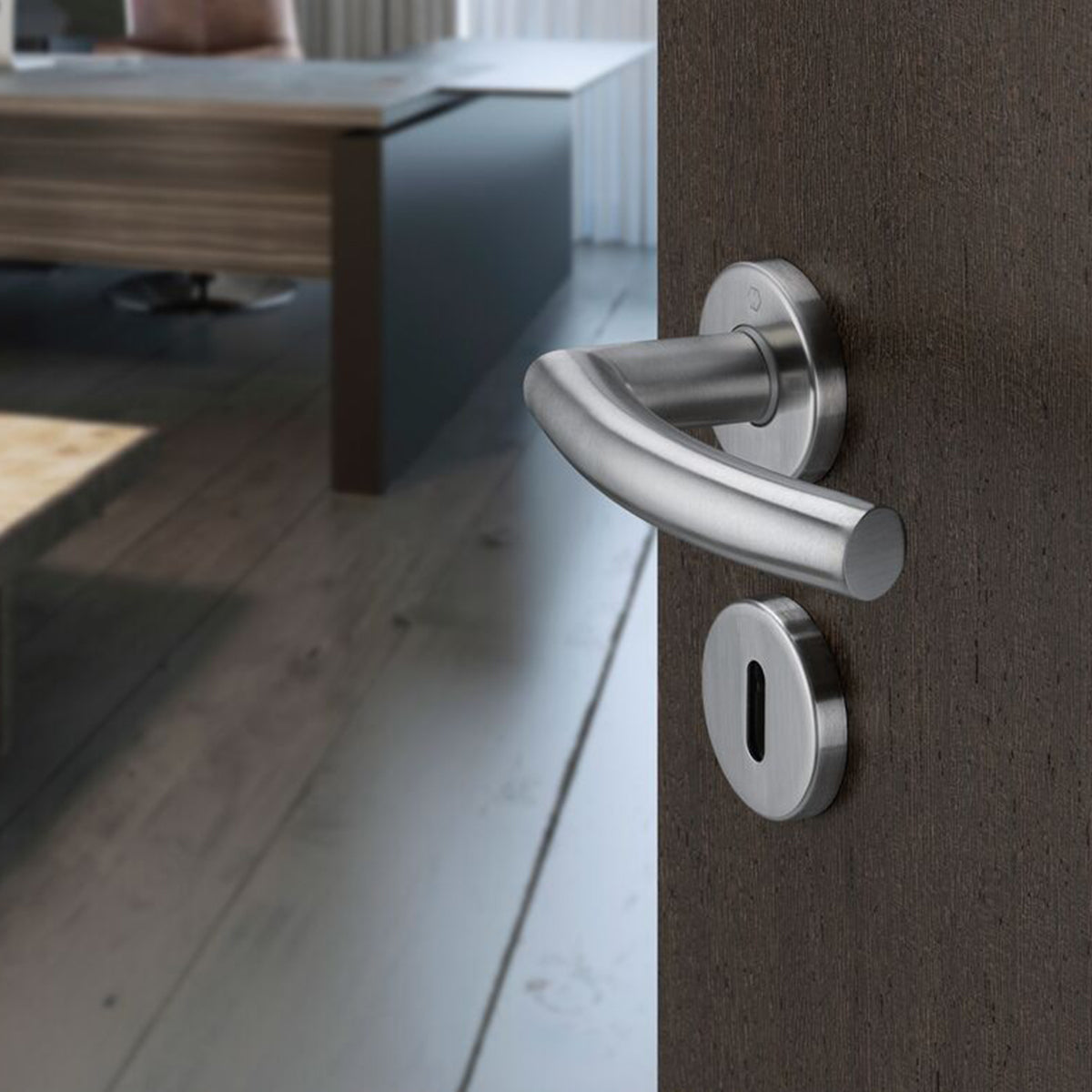 Maniglia Hoppe Trondheim rosetta e bocchetta tonde d. 52 mm acciaio satinato