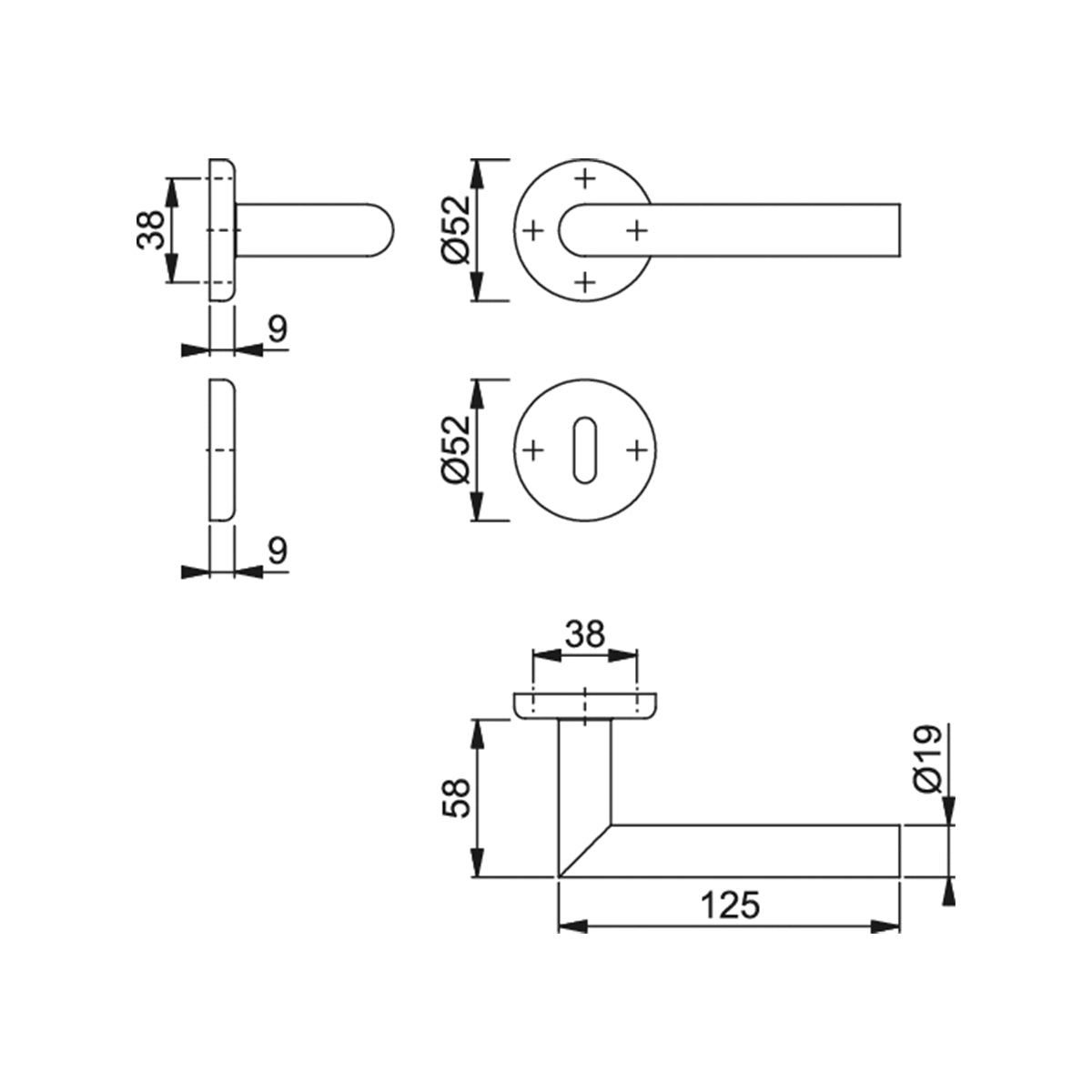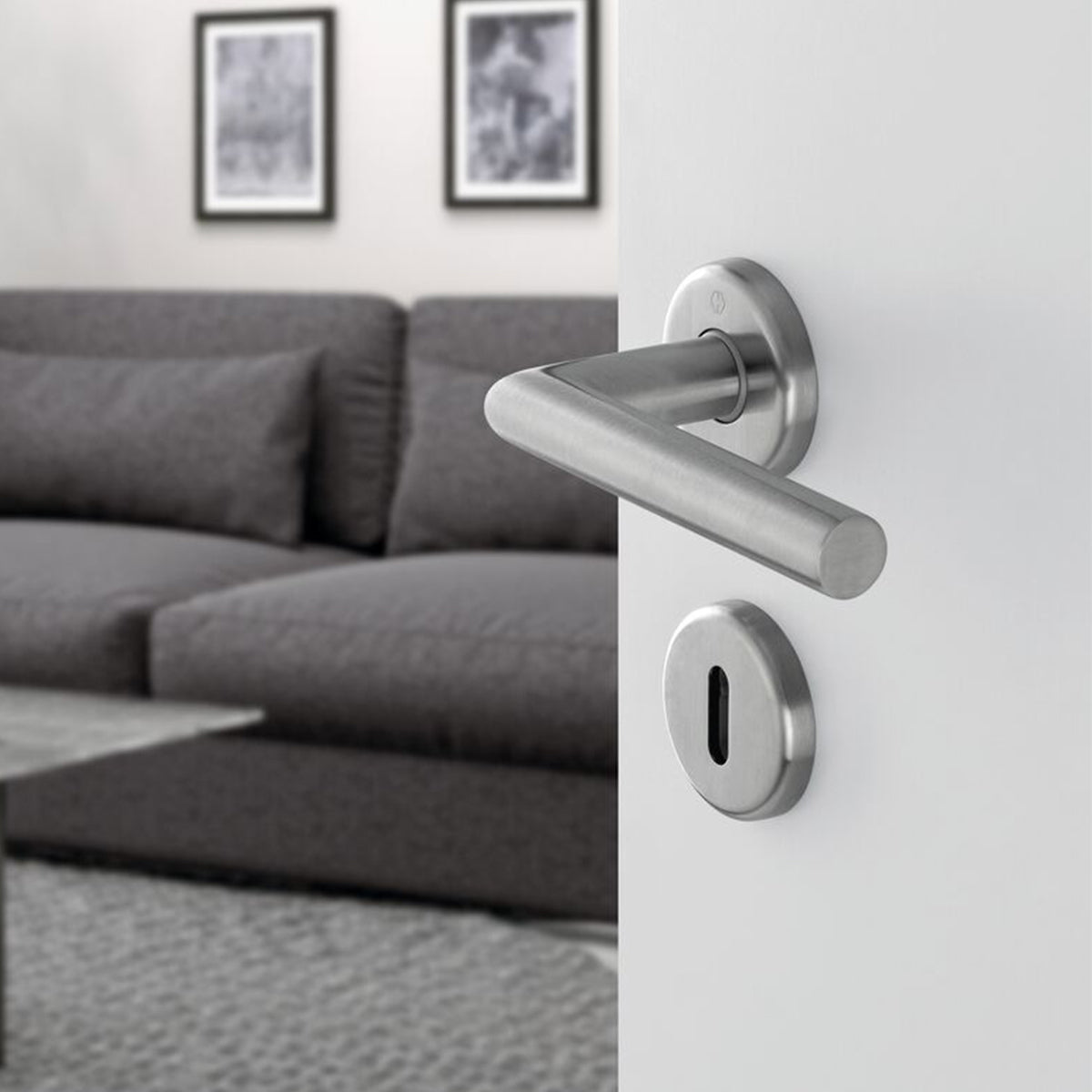 Maniglia Hoppe Utrecht rosetta e bocchetta tonde d. 52 mm acciaio satinato