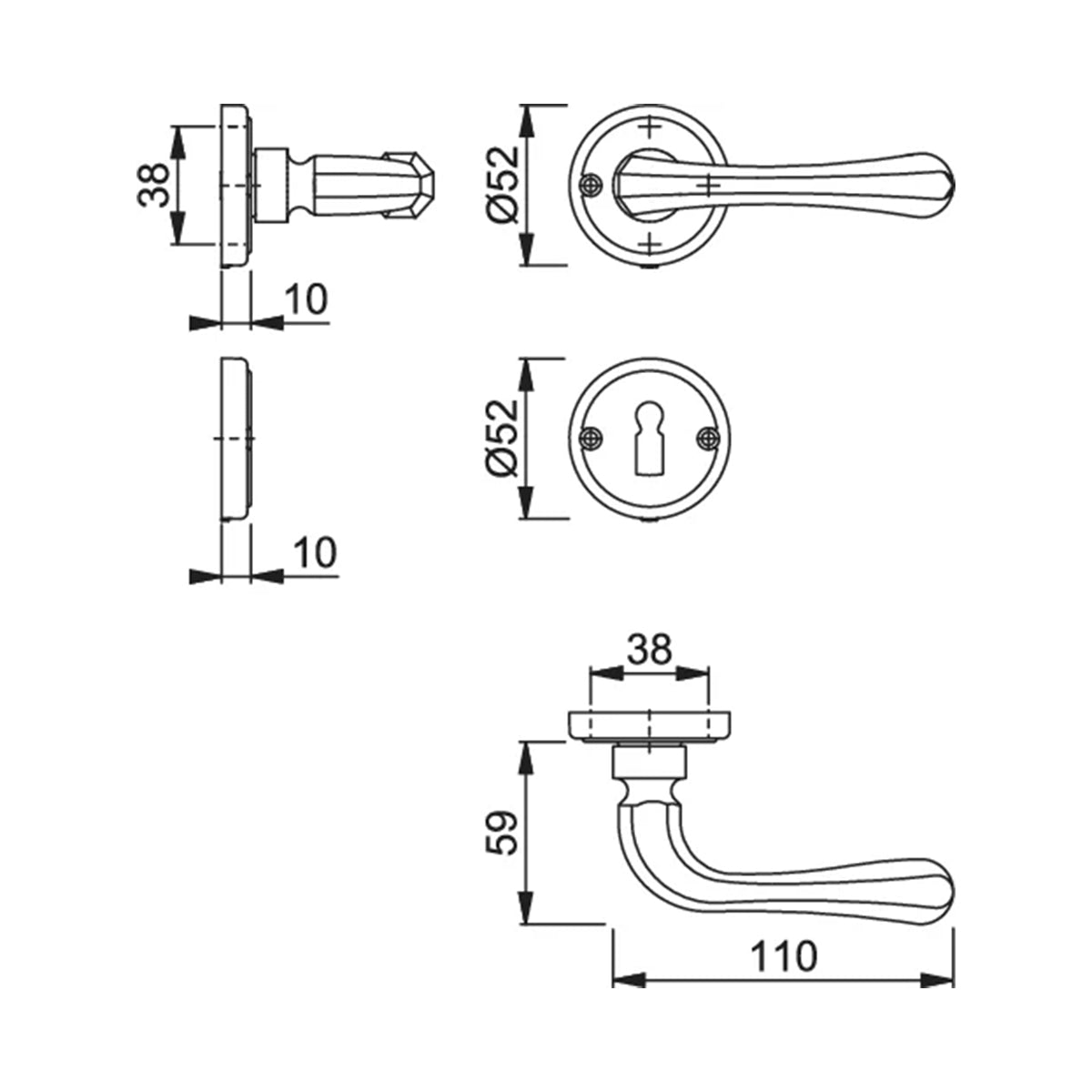 Maniglia Hoppe Valencia rosetta e bocchetta tonde diametro 52 mm