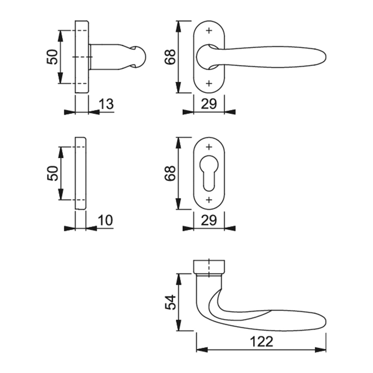 Maniglia Hoppe Verona rosetta e bocchetta ovali 29x68 mm foro cilindro ottone lucido