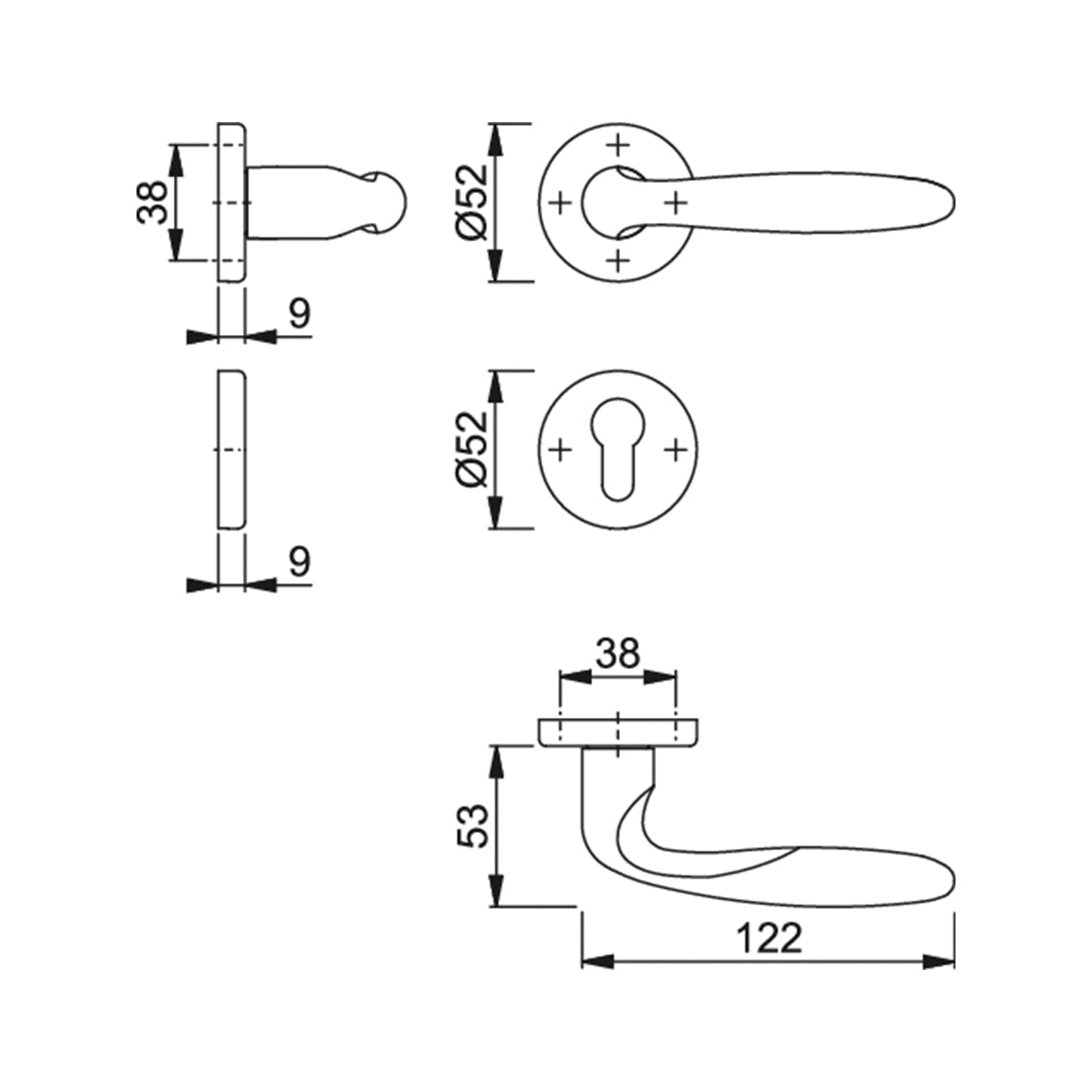 Maniglia Hoppe Verona rosetta e bocchetta tonde d. 52 mm foro cilindro cromo satinato