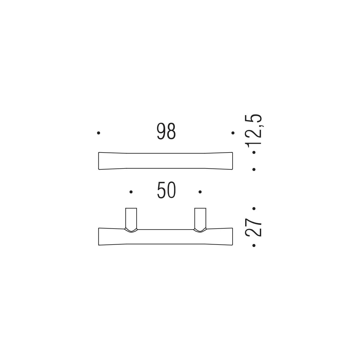 Il modello F104 si distingue per un’estetica più essenziale e rigorosa, con bordi netti e superfici perfettamente planari. La forma rettangolare e allungata (98 x 12,5 mm), unita all’interasse da 50 mm, la rende particolarmente adatta per cassetti e ante, garantendo al tempo stesso facilità di installazione e una forte presenza visiva.