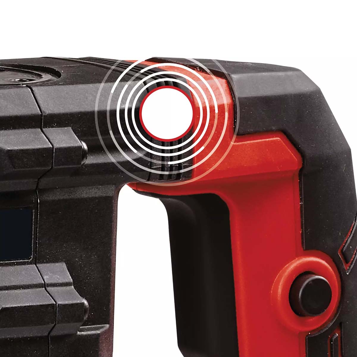Dotato di attacco SDS-Plus, consente un cambio rapido e sicuro degli utensili, garantendo compatibilità con tutti gli accessori SDS-Plus standard. L’impugnatura antivibrazione riduce l’affaticamento durante l’uso, mentre l’impugnatura supplementare regolabile assicura una presa salda e confortevole in qualsiasi posizione di lavoro. Il motore ad alte prestazioni eroga fino a 4.300 colpi al minuto, assicurando un’ottima capacità di demolizione pur mantenendo un formato compatto. Il cavo in gomma da 4 metri offre grande libertà di movimento, ideale per operare in aree ampie o difficilmente raggiungibili.