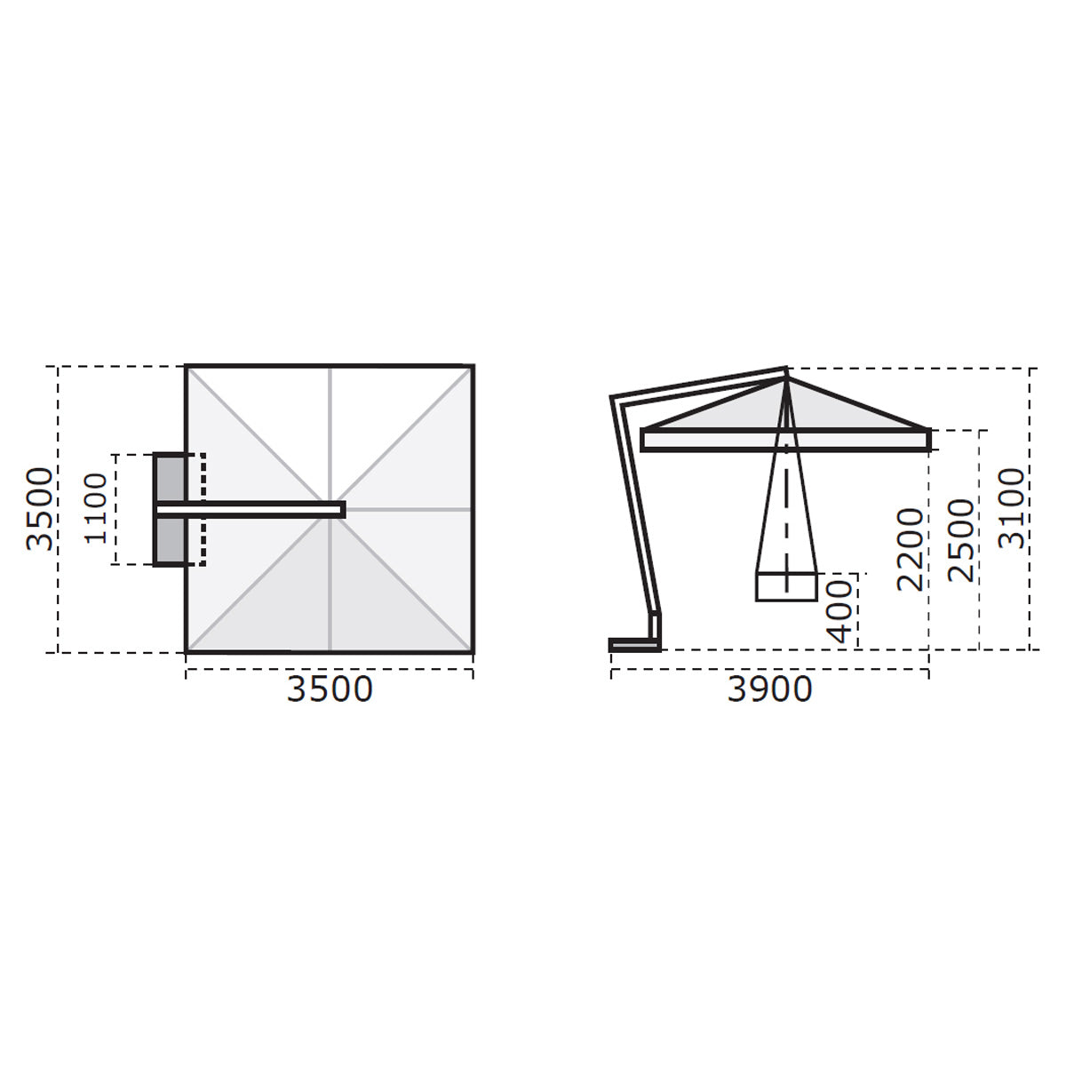 Ombrellone a braccio Palladio 3x3 mt ecrù