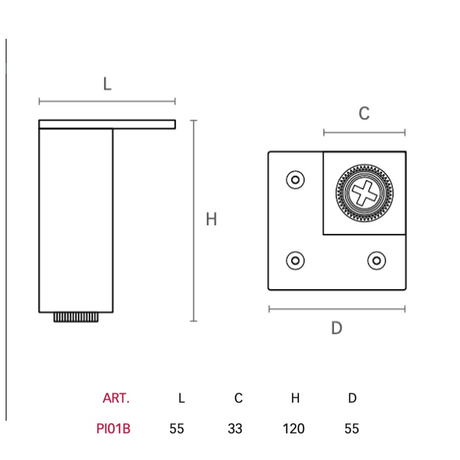 Piedino quadro regolabile in ABS nero opaco PI01B
