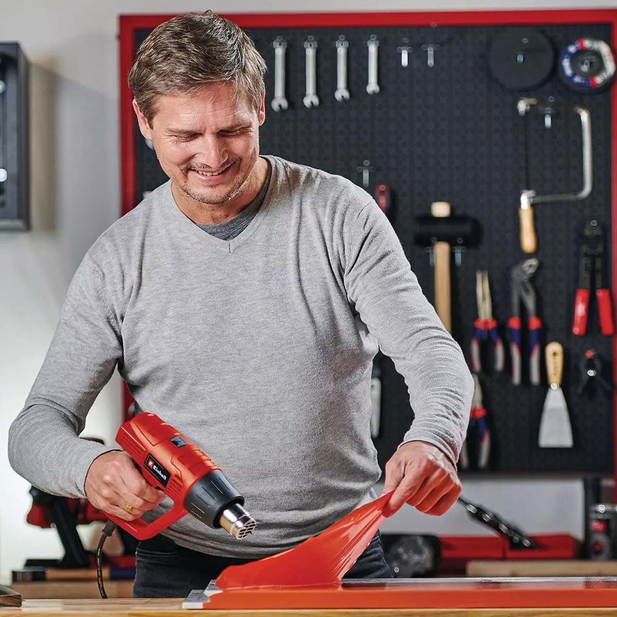 Grazie alla regolazione su 2 livelli di temperatura e flusso d’aria, la TC-HA 2000/1 consente di adattarsi facilmente a ogni tipo di lavorazione. Il primo livello (350 °C / 300 l/min) è perfetto per lavori delicati o di precisione, mentre il secondo livello (550 °C / 500 l/min) garantisce la massima potenza per interventi più impegnativi.